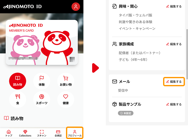 ※ ②③合わせて「プロフィール」ページ(https://mypage.ajinomoto.co.jp/user)の登録状況が100%の状態になっていると、毎月自動的に応募完了となります。