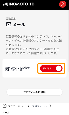 ● 「@id.ajinomoto.co.jp」からのメールが受信できるよう設定をお願いいたします。