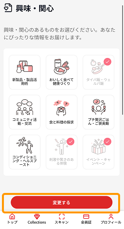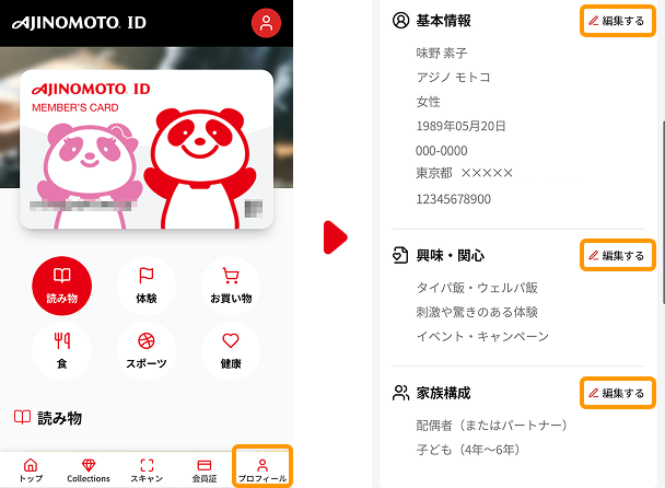 ③ 右上のメニューボタンより「基本情報」「趣味・関心」「家族構成」をそれぞれご登録ください。